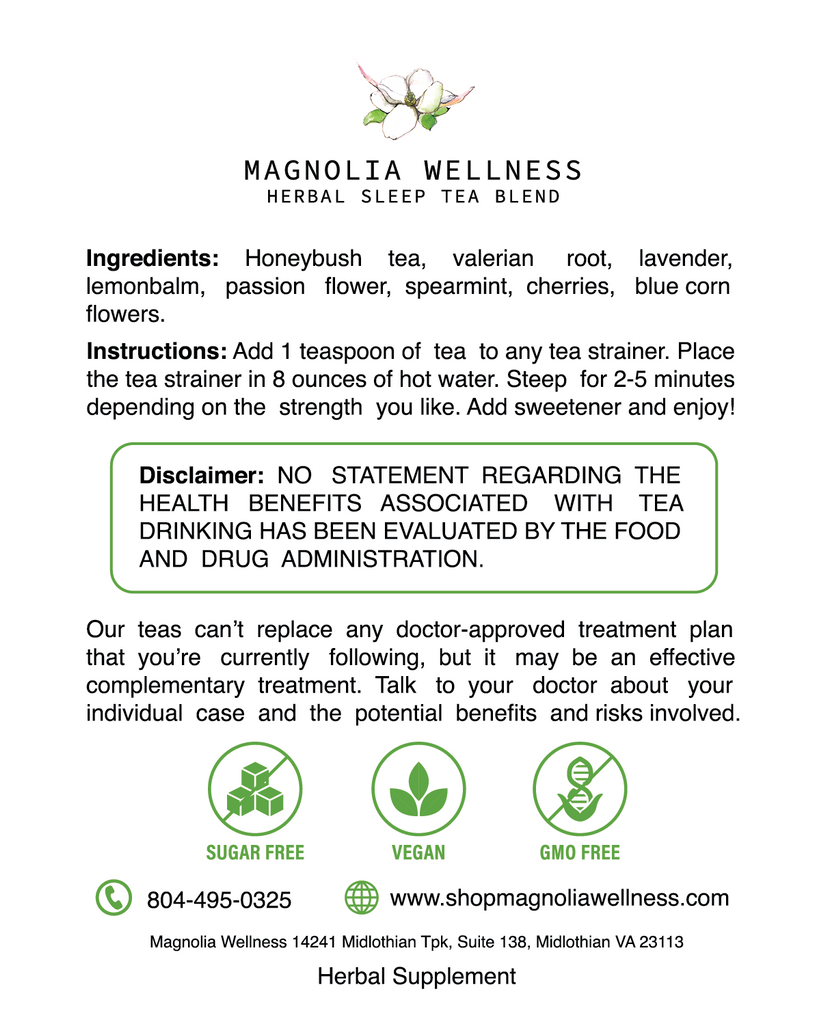Our aromatic blend consists of valerian root, passionflower, lemon balm, and a few other floral delights.